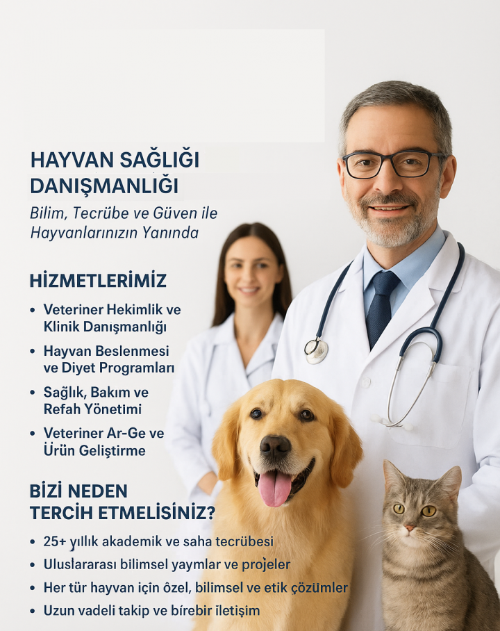 Akademik ve klinik deneyimiyle, hayvan sağlığı, beslenme ve veterinerlik hizmetleri alanında uzman veteriner hekimlerden oluşan ekibiyle birlikte; evcil hayvanlardan çiftlik hayvanlarına, egzotik türlerden üretim tesislerine kadar geniş bir yelpazede profesyonel danışmanlık hizmetleri sunmaktayız.